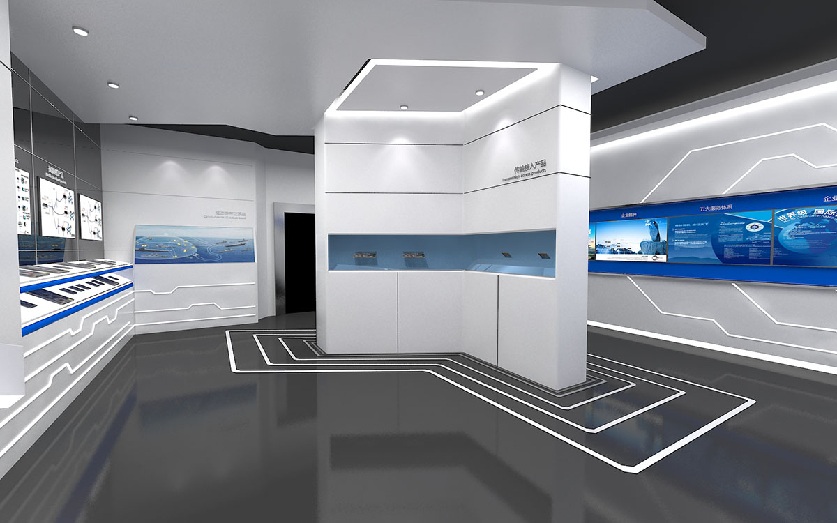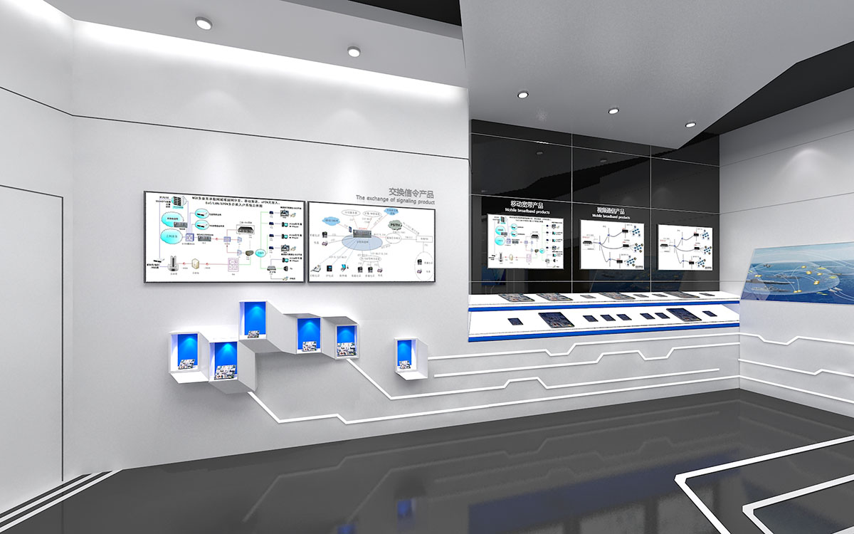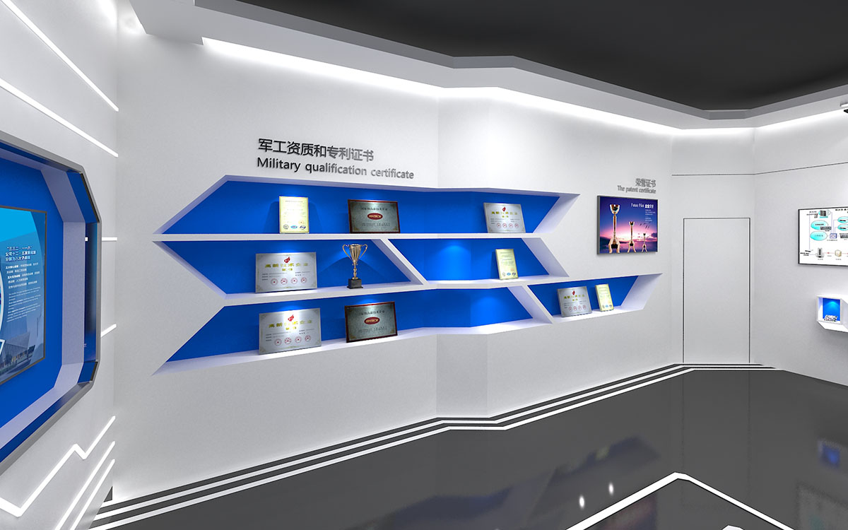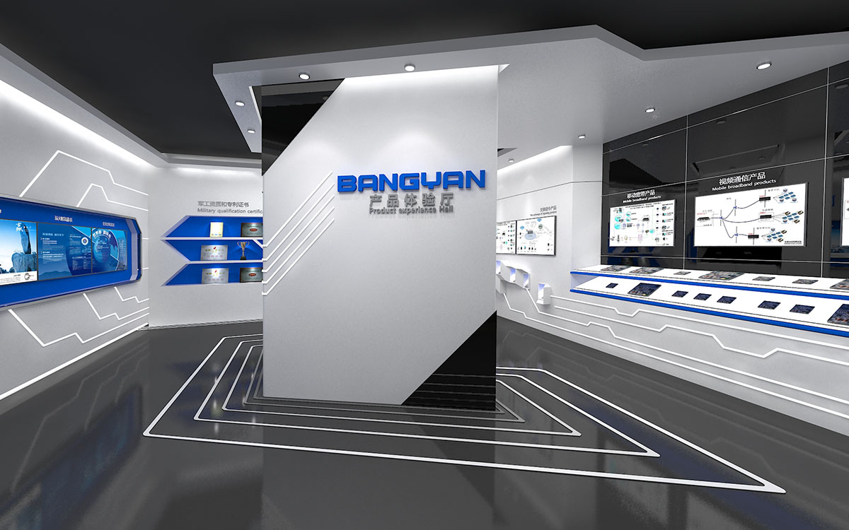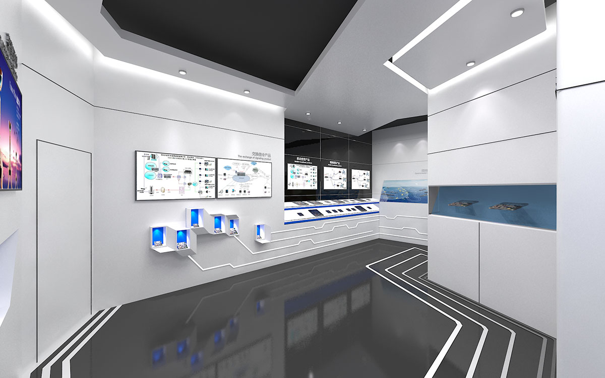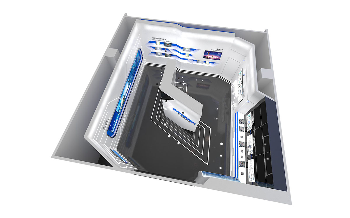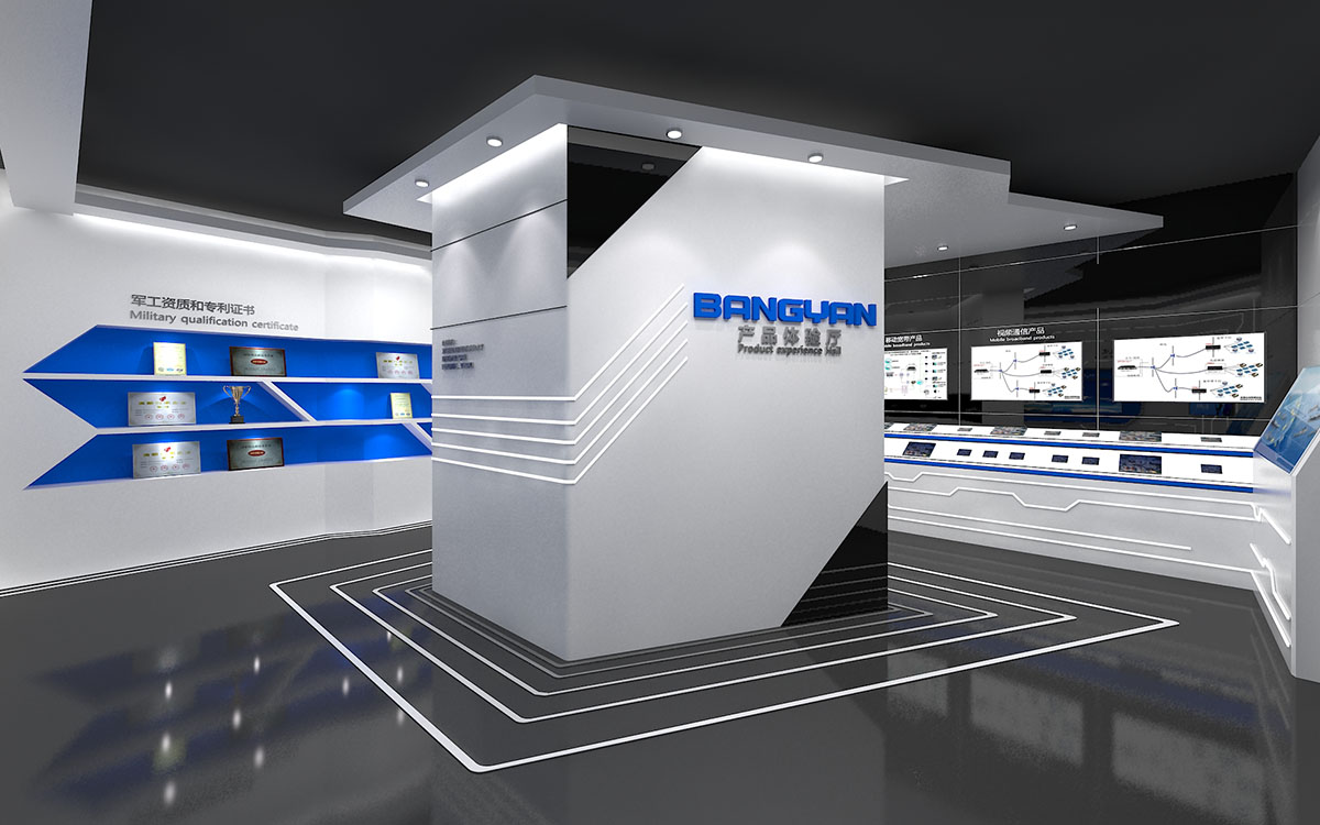 我們在有限的空間中,企業(yè)主要是做通信產(chǎn)品,所以我們以科技的連接為概念,設置了一個未來概念的空間,并通過互動體驗屏,以及多媒體動畫視頻等內(nèi)容來讓參觀者理解企業(yè)所處行業(yè)達到的技術高度,以及企業(yè)在國防通信領域的重要性。